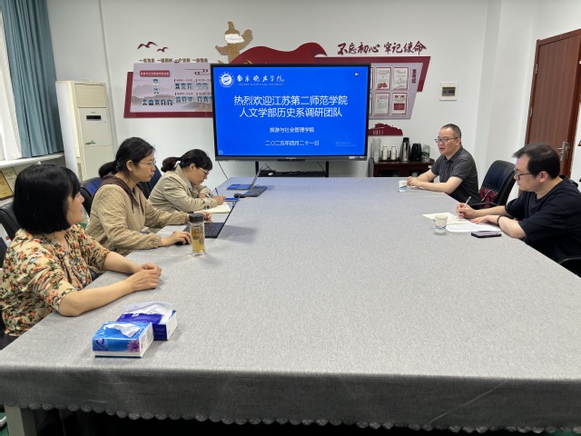2025年4月21日上午,江苏第二师范公司人文学部副主任邓玮光,历史专业教研室主任张子恺一行莅临公司调研座谈在崇一楼文南201教室进行,公司副经理涂玮教授、历史学(师范)专业负责人秦翠红教授,专业教师耿祝芳和叶璐等人参与座谈。双方围绕人才培养方案、课程设置、教学实践安排等议题展开了广泛而深入的交流。