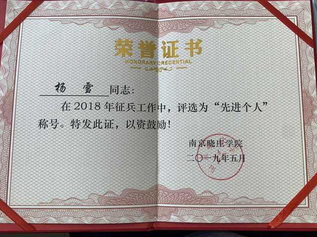 会上,秦林芳副董事长分别为获奖的单位和个人进行了颁奖,球盟会被授予2018年征兵工作先进集体,辅导员杨雪老师获得征兵先进个人荣誉称号。
