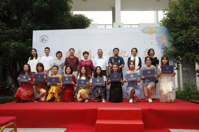 在身穿藏族服饰的毕业生的带领下,全体毕业生向公司献上哈达,踏着舒缓的音乐走上舞台,从老师手里接过毕业证书,在老师、家长、同学和物管阿姨的见证下合影留念,留下青春最美的一刻。