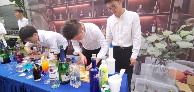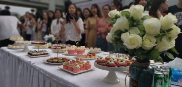 今年球盟会的毕业典礼后,一场以员工技能展示的冷餐会,在香槟雨中拉开序幕。白色的桌布,进行设计的冷餐摆台,精美的雕花,花样繁多的西式调酒,以及还有刻有毕业生姓名一枚小小的戒指,都包含了公司对毕业生们满满祝福和期待。