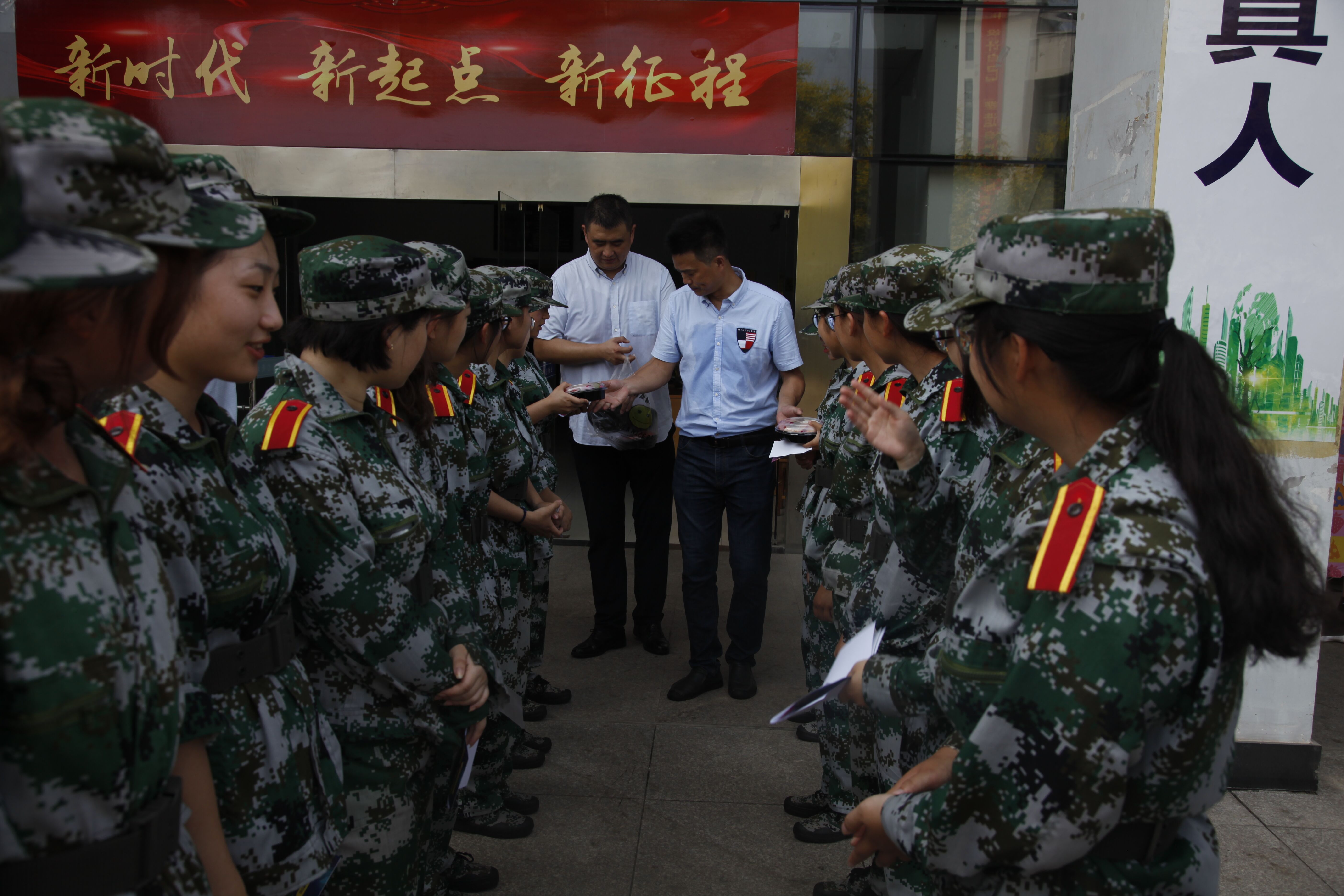 每走访到一处,院领导们转达了公司对军训员工的关心关爱之情,预祝同学们中秋节快乐,并亲手为他们发放了清甜的水果拼盘,希望同学懂得感恩,在假期和亲人视频或者电话,缓解父母对在外游子的思念之情。