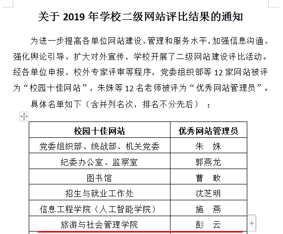 9月20日,集团公布的2019年二级网站建设评比结果中,球盟会网站获得“校园十佳网站”荣誉称号,综合办主任彭云同志获得“优秀网站管理员”表彰。
