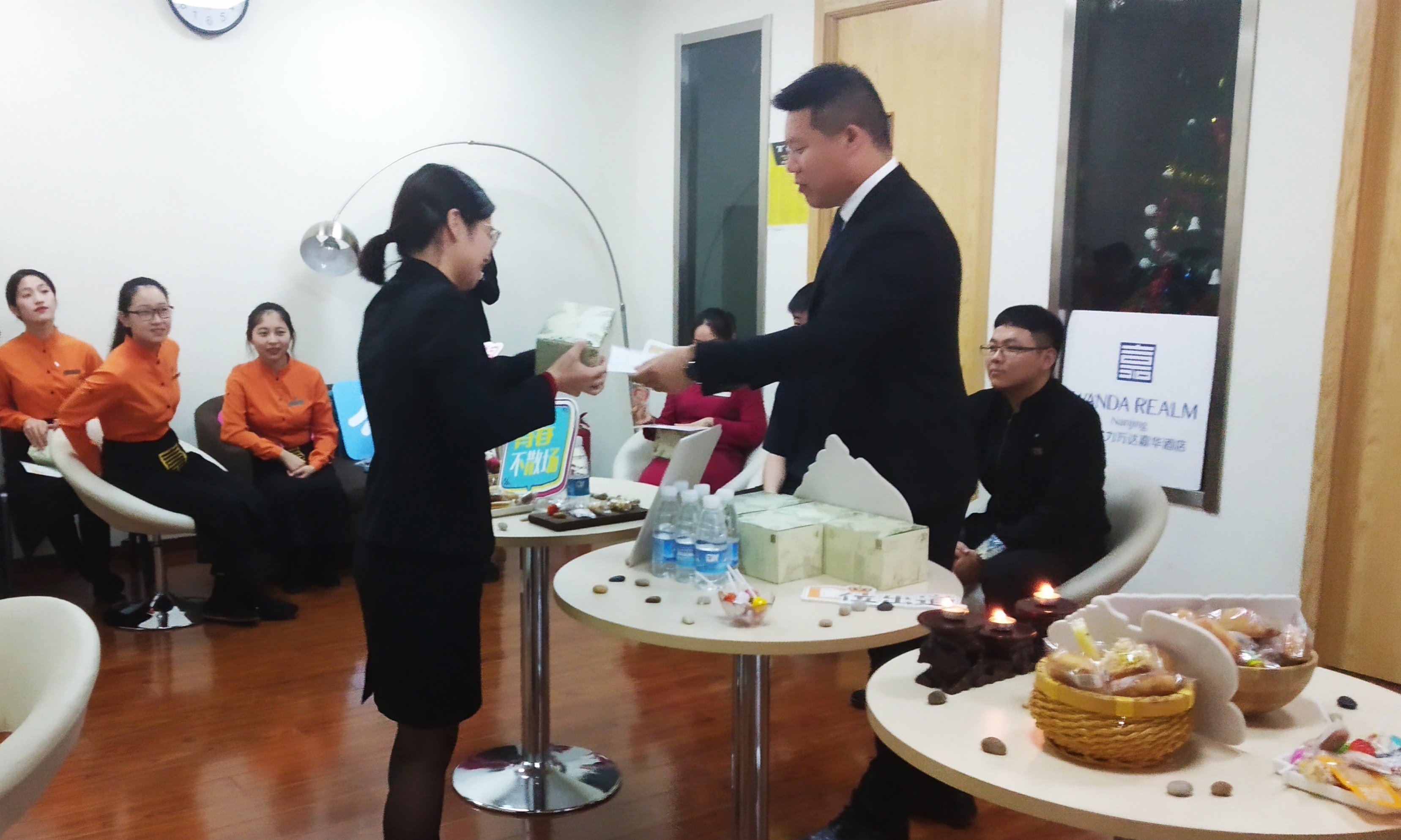 9月29日下午,公司2016级旅游管理专业9位同学在富力万达嘉华酒店的实习圆满结束。酒店为同学们举行了专场告别会,颁发由人力资源总监和酒店总经理签字的实习证书,并赠送了小礼物,以示对同学们辛苦付出和优异实习表现的认可,并祝愿大家在今后的学习和工作中再获佳绩!人力资源部姚俊羽经理主持仪式,徐菁老师和余子萍老师参加。