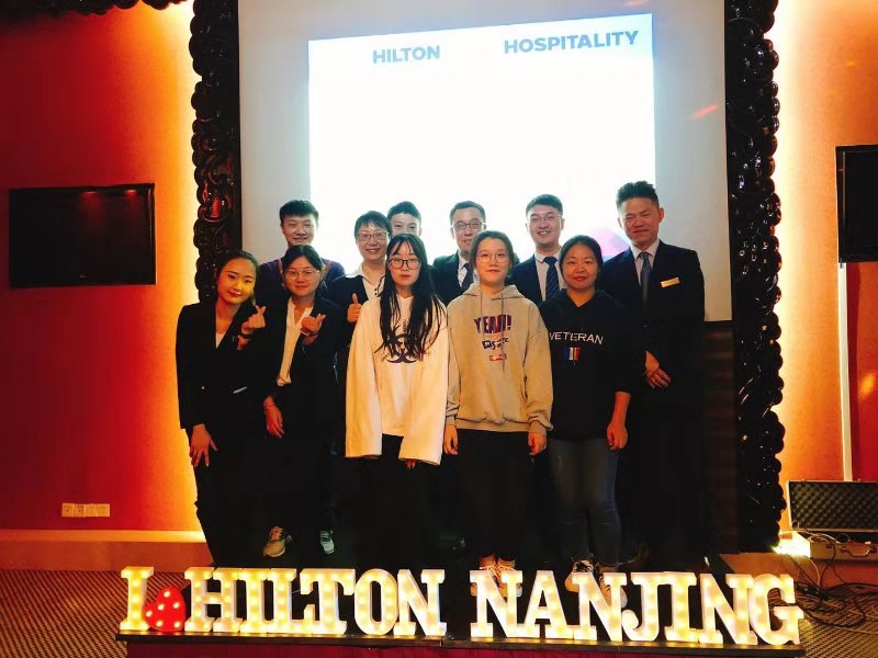 2019年10月8日,公司2016级旅游管理专业的5位同学在南京朗昇希尔顿酒店的实习圆满结束。酒店于10月15日在酒店劲吧为5名同学精心准备了一场别开生面的实习生欢送会,集团旗下的领导层均出席参加、依次致辞表示对同学们付出和实习期间的认可给予极高评价,祝愿在今后的工作中坚守初心、勇攀高峰!