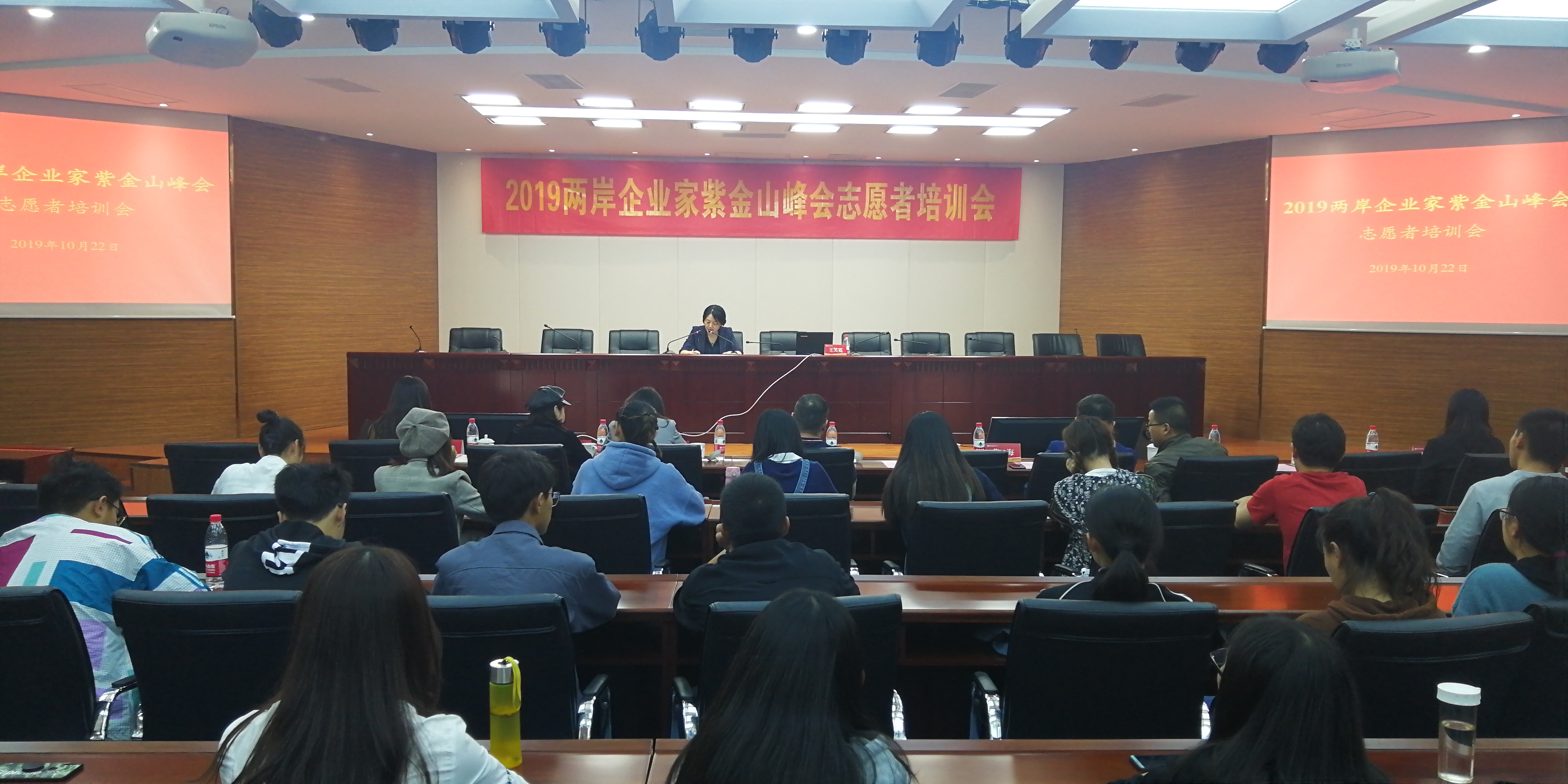 10月22日,2019年企业家紫金山峰会志愿者培训会议在qm球盟会方山校区举行。南京市台办台胞服务中心主任赵岚、市台办交流处处长王笑霓以及校团委相关负责同志出席活动,公司130名员工作为志愿者参加了培训活动。
