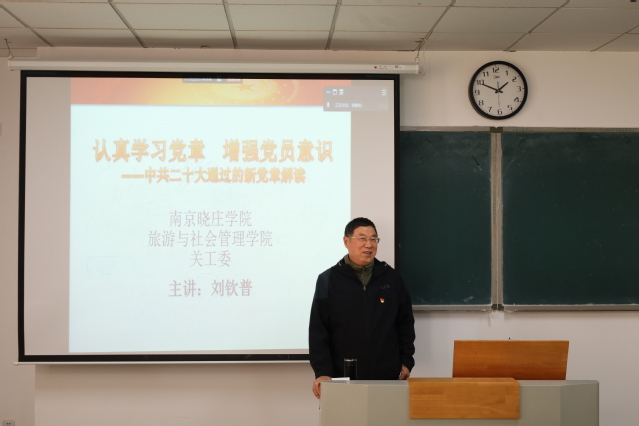刘钦普教授以“认真学习党章增强党员意识”为主题,全面系统解读了《中国共产党章程》,勉励大家要踏实学习党章,积极向党组织靠拢。他强调,《中国共产党章程》是中国共产党为实现党的纲领所制定的根本法规,是一面旗帜,是最根本的党内法规,是党内的根本行为规范,同时也是党存在、发展和夺取胜利的一个基本条件。他提出三点建议:一要读原文,全面系统地理解党章的内涵;二要把握学习的重点章节、内容;三要坚持理论联系实际。他激励大家,作为一名入党积极分子,要做到“未进党的门,先做党的人,将来进了党的门,做好党的人。”课后,学员们围绕学习《中国共产党章程》进行了深度交流。