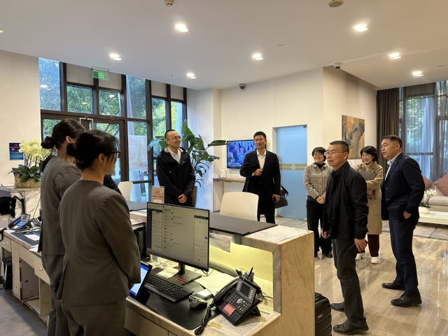 鲁学军一行实地考察了碧云酒店公司和新金桥广场公司的工作板块,深入员工实习与就业岗位,与同学们进行了面对面交流,了解他们的实习收获、生活情况和岗位适应度。