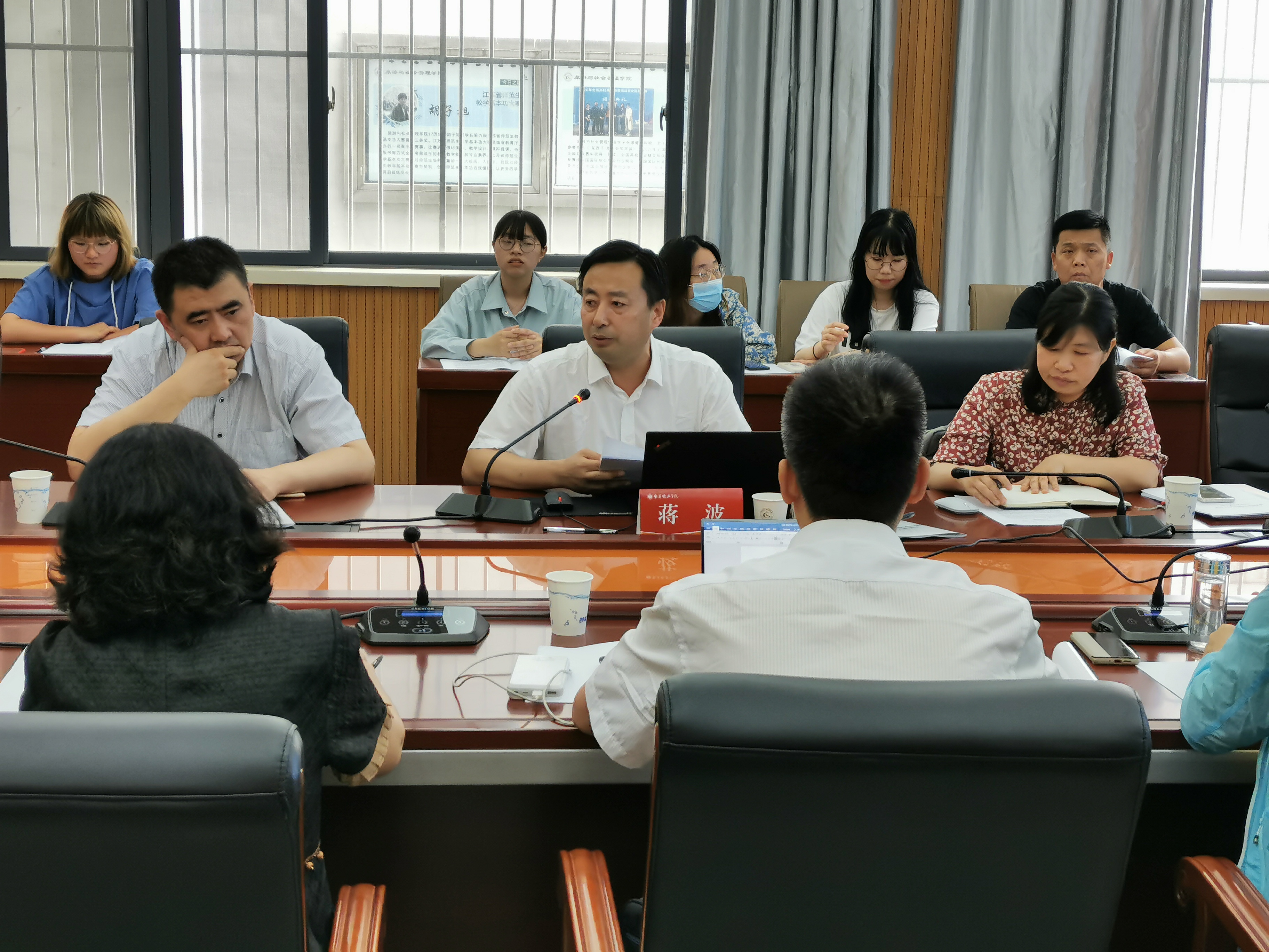 之后,蒋波经理还就本次专业认证过程中的优势经验和教训和各位教师做了交流。他就小学教育专业PPT汇报、员工技能测试、实验取向特色等方面的优势经验向各位老师做了展示。同时,也指出本次专业认证中出现的问题,比如专业认证报告由于时间、人员跨度大,导致其中数据和信息出现一些错误。