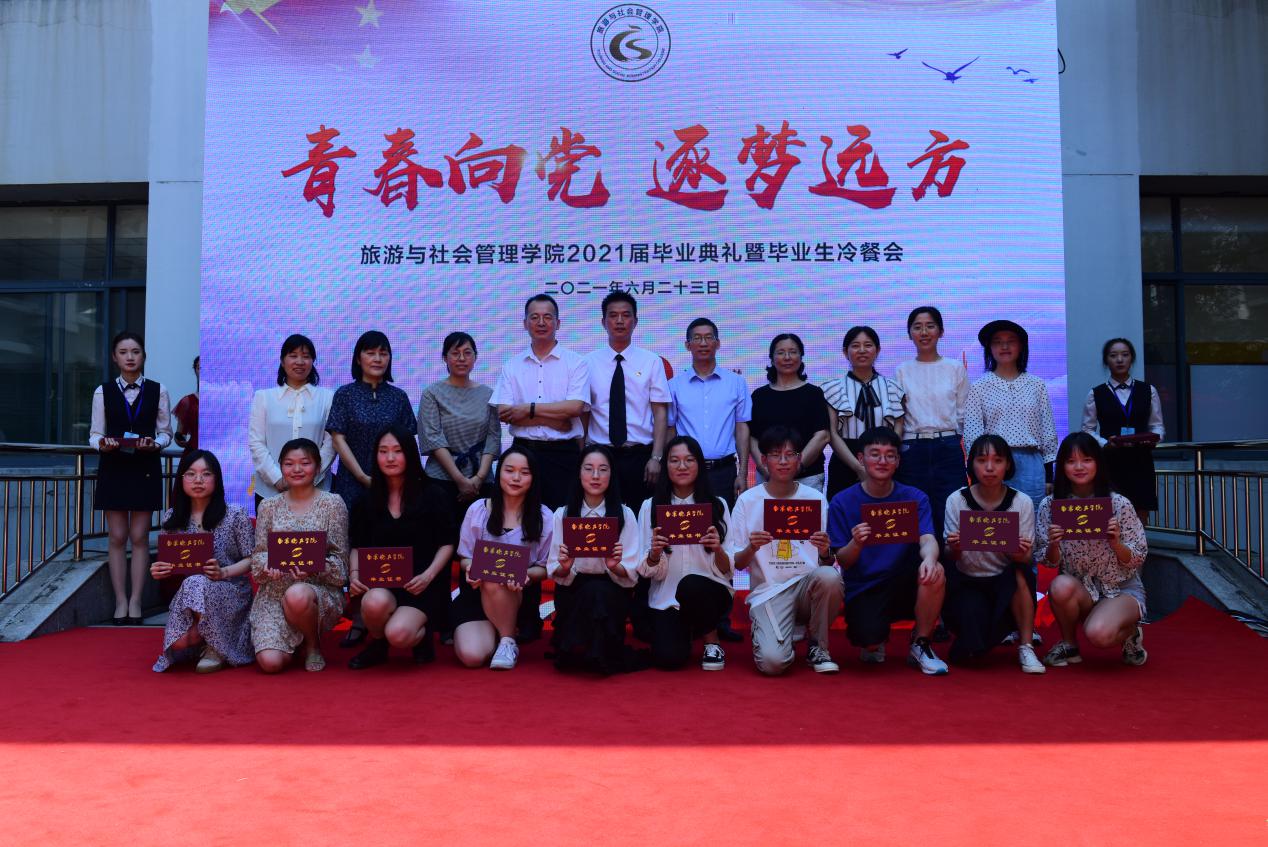 6月23日下午,“青春向党,逐梦远方”旅游与社会管理公司2021届毕业典礼暨毕业冷餐会在崇一楼文浚苑隆重举行,公司党政领导、各专业教师以及2021届毕业生共同出席毕业典礼,典礼由赵文迪与韩耀扬主持。