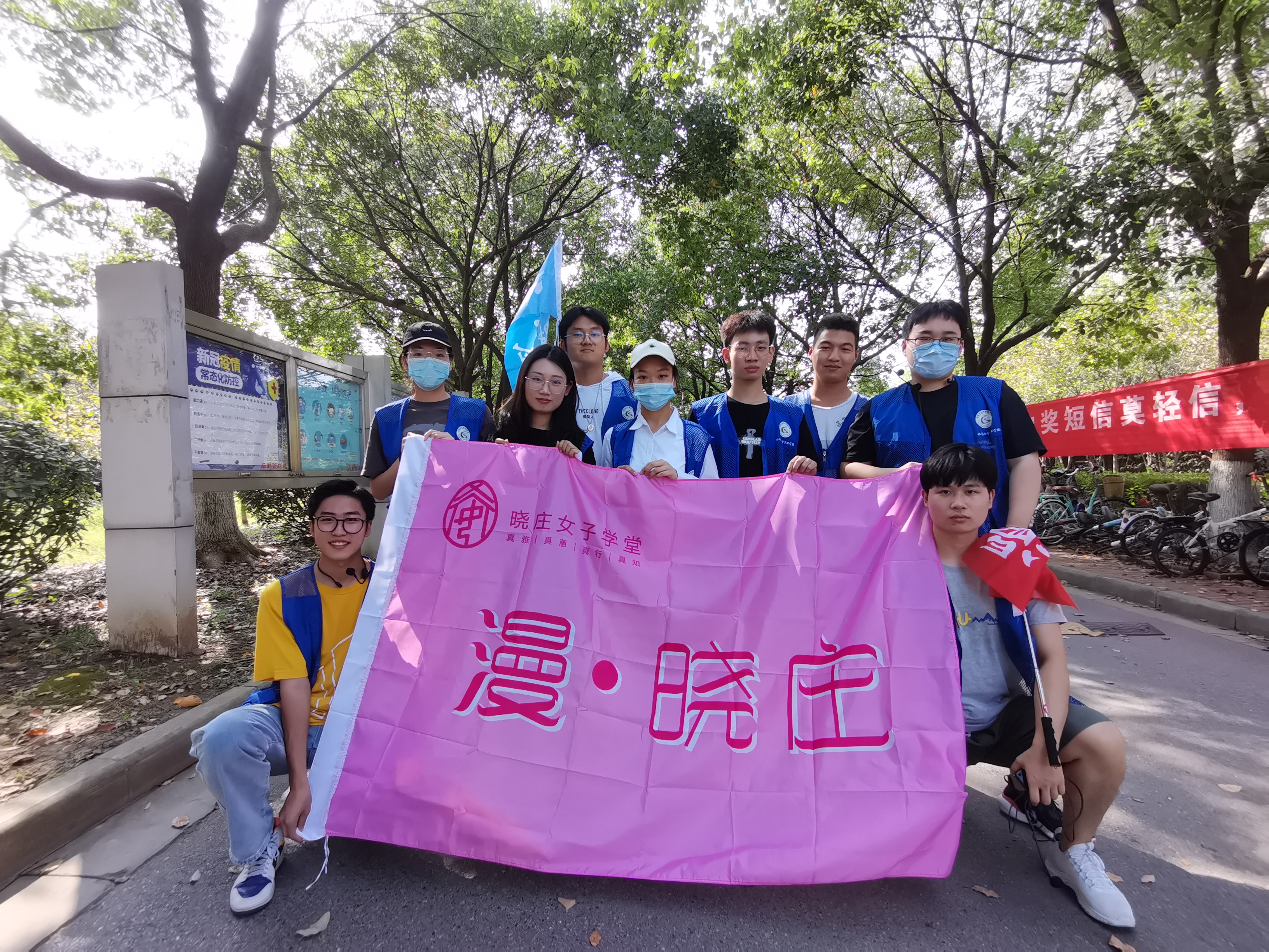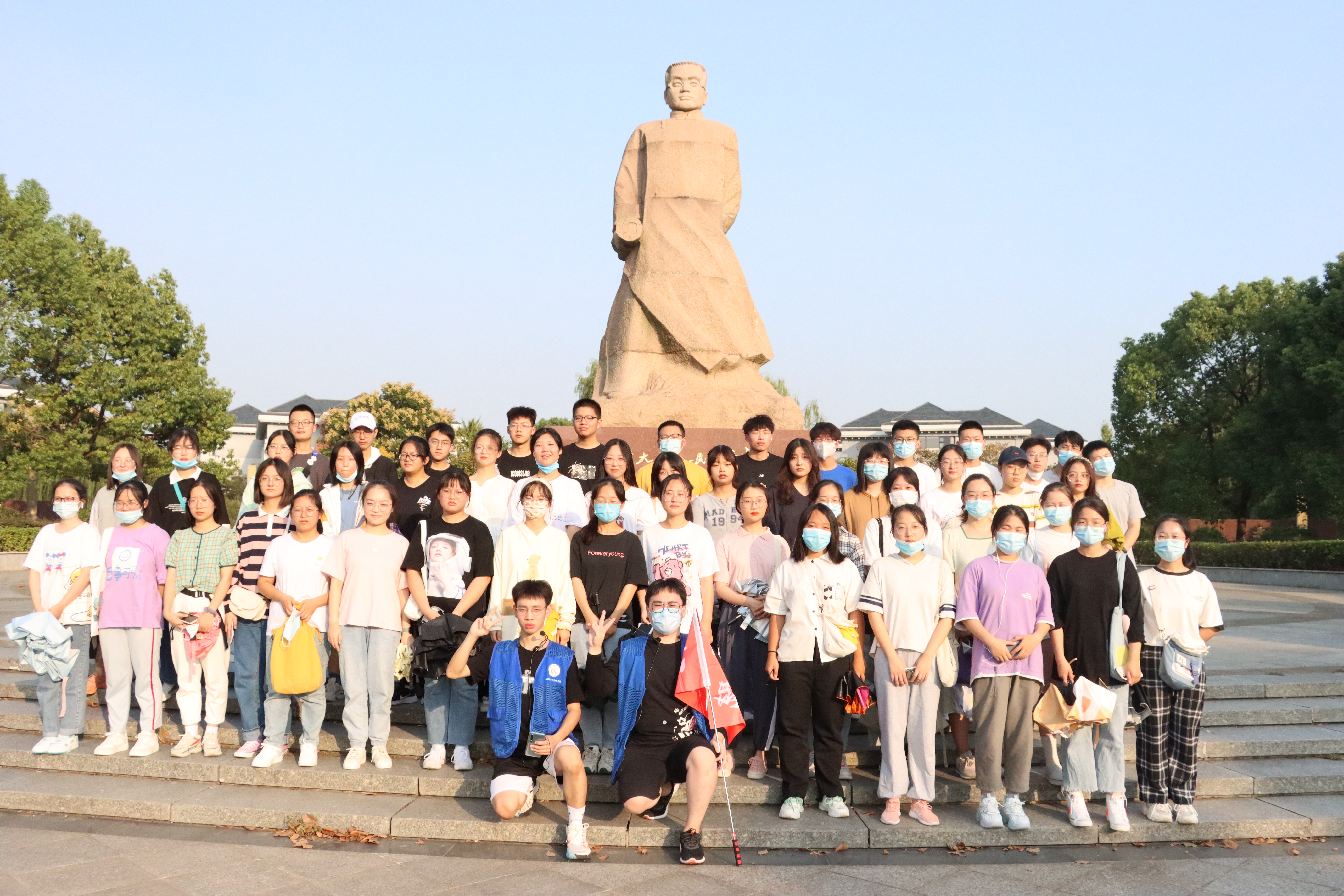 10月1日下午,在伟大祖国生日的当天,球盟会“漫·晓庄”志愿讲解队带领239名新生,分成7支队伍参观了校园。