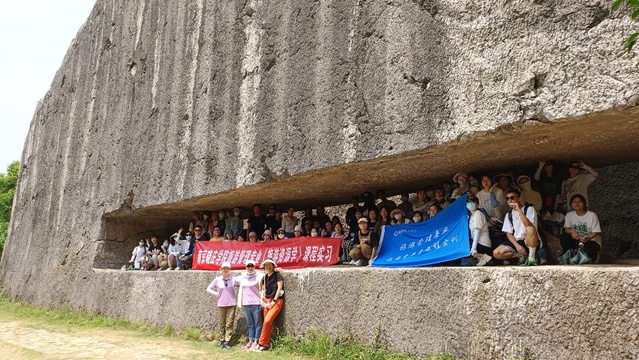 实训实践活动的第二天考察点是江宁佘村、阳台碑材、汤山猿人洞、直立人化石遗址博物馆。在阳山碑材和猿人洞,同学们对汤山地区典型的石灰岩地质和溶洞演变,以及古人类遗址及科普展示利用进行实地考察。在佘村民居群,同学们对南京明清村落分布,民居布局结构等进行现场考察。