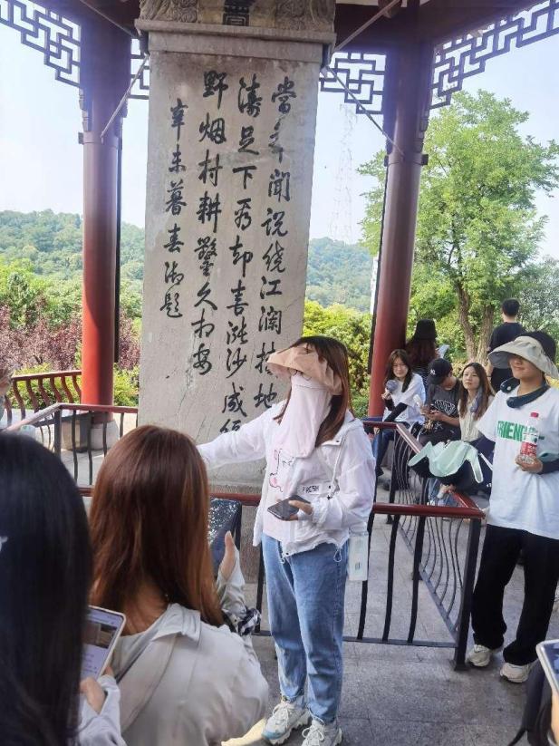 最后一天的考察点是位于溧水区的天生桥和无想山。受到雨季前开闸放水的影响,同学们未能亲身体验峡谷穿梭游船画廊的活动,但通过5D体验和博物馆展示,大家也深入了解胭脂河这一人工运河的开凿历史,获得中国古人智慧和合作力量。在无想山,同学们勇敢探索,登上百步云梯,现场体会火口湖天池的迷人景致。
