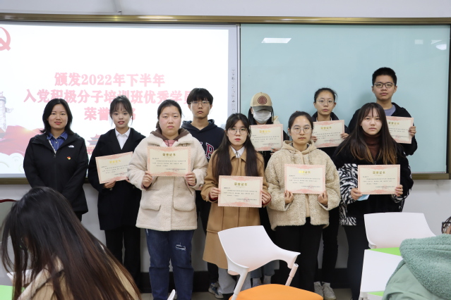 随后,分党校班主任兼员工第一、第二党支部书记韩文琪同志宣读本期分党校优秀学员名单,并和杨雪同志一起与优秀学员合影留念。