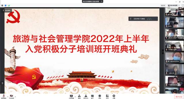 4月12日下午,公司2022年上半年入党积极分子培训班开班典礼在线上顺利举行。本次典礼由分党校班主任韩文琪同志主持。出席本次开班典礼的领导有公司党总支副书记副经理孙景荣同志、学工班主任王均强同志、辅导员杨雪同志,以及42位入党积极分子。