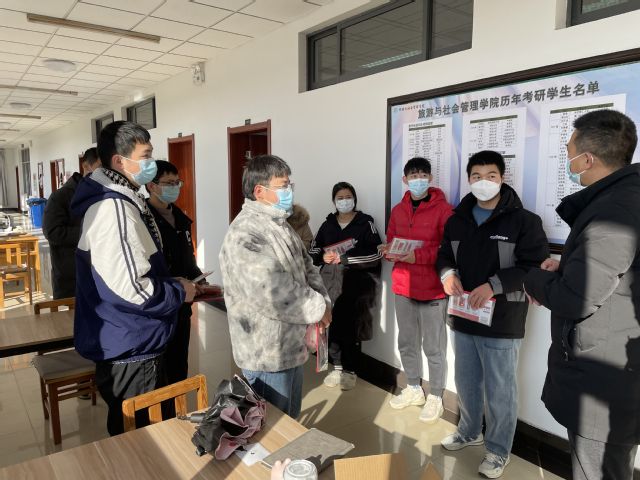 2022年12月19日上午,在文南四楼的走廊内,公司领导老师组织慰问在校备考研究生的同学,公司党总支吴鑫书记、孙景荣副书记、学工办老师以及在文南考研基地备考同学参与了此次活动。