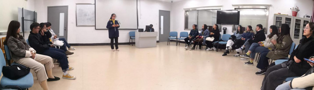 2018年11月19日,社工协会在文南211进行同伴教育招新活动,活动举办方讲述了同伴教育的发展历史以及在校开展成就,面试的同学准备面试材料,自我介绍,讲述自己对活动的认识以及参加活动的目的,招新活动有条不紊地开展。