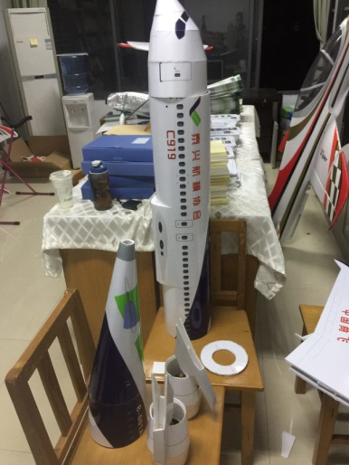 2018年4月21日晚,航模社成员在文南112教室举办C919大型航模机的装配和调试活动。活动邀请了相关技术人员进行指导,首先由社长讲述整个操作过程、工具的使用及注意事项,由于飞机较大,成员分配工作,每个人负责飞机的一个部分,以便每个社员都能动手制作,动脑思考,各自完成后将部分拼接起来共同调试。在技术人员指导和社员共同努力3小时后,发动机和舵机根据遥控指令精确响应,整个飞机装配完成。该机采用双电动涡扇发动机,具有6通道能够完成各种飞行动作包括起落架的收放,而且最高时速可到达90km/h。