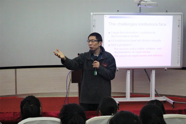 讲座,梁教授从大家入坐的座椅着手向同学阐述什么是不平等,这营造了活跃的气氛和激发了员工的思考。之后,他详细的分析多元文化背景下社会服务中存在障碍。并结合自己的研究,提出了解决途径