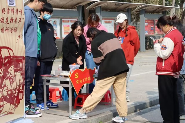 在活动中,党员同志们积极宣扬雷锋精神,以立牌、有奖问答、问卷填写等方式,引导同学们参与进来。至活动结束共收集问卷190多份。