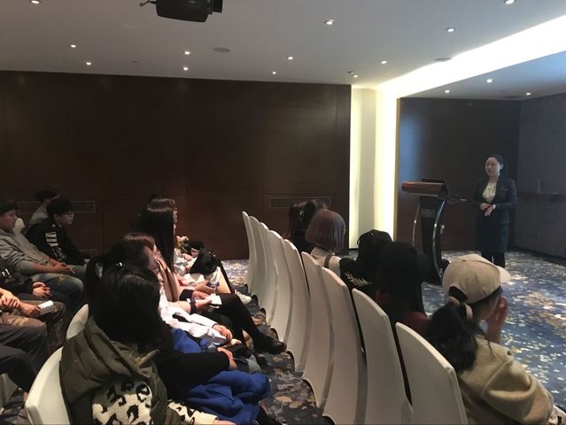 在酒店陪同人员热情洋溢的介绍下,同学们依次参观了酒店大堂、餐厅、酒吧及客房等区域。在酒店会议室,人力资源部LEO为同学们讲解了洲际集团的发展、文化以及理念,酒店前厅、市场部等工作人员就他们的工作和经历与同学们进行了沟通和交流。中间,酒店还为同学们准备了精致而可口的茶歇,让同学们兴奋不已。