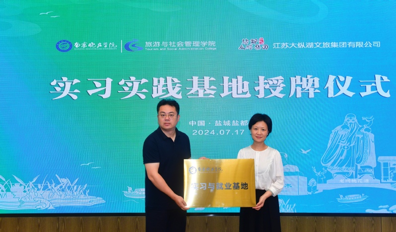 研学旅程中,球盟会和江苏大纵湖文旅发展集团负责人举行了校企座谈会,双方共建实践就业基地,共商旅游酒店管理人才的培养管理之道。球盟会副经理从专业角度就区域文化传播、人才数字夜校、动态场景营造方面提出了合理建议。她指出,世界级旅游目的地需要建立具有多语言、多文化的解说系统,要发挥旅游专业的人才底色,做好区域文化的国际传播、交流与教育。信息技术赋能人才培养,校企政联合打造文旅团队教育团队,打造数字夜校,通过文旅行业的社会持续教育实现人才的进级进阶培养,为文旅行业的发展储备高层次人才。她建议文化场景的营造不仅注重静态场景,也要关注动态场景的打造,给市场带来更多沉浸式旅游体验。