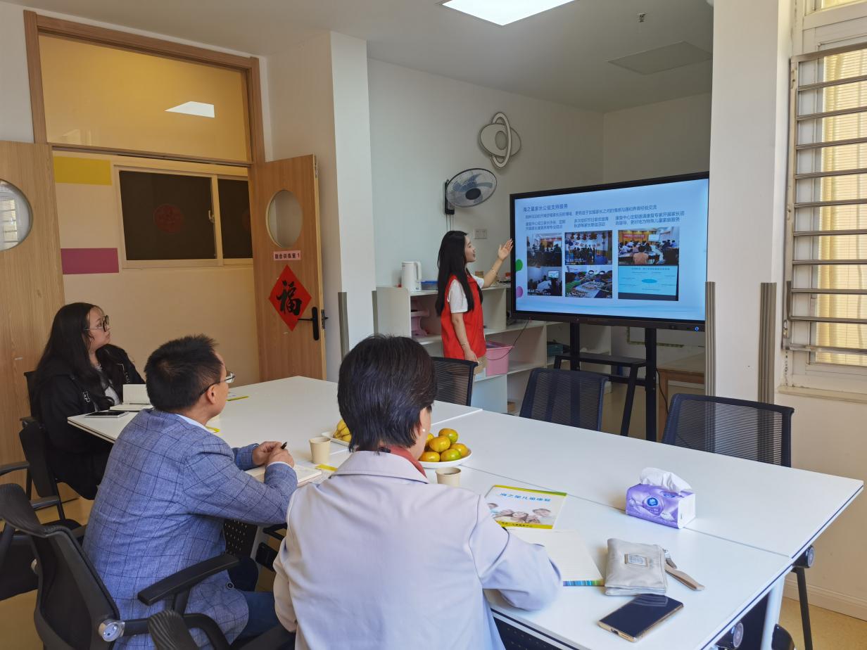 中心工作人员人为调研团队做了详细介绍。“海之星”儿童康复中心是一家致力于自闭症儿童和智力发育障碍儿童康复的民办非营利机构。该中心在南京市江宁区残联的大力支持下,汇聚了一支由儿科医生、心理学家、康复师和教育专家组成的专业团队,为需求者提供个性化的康复计划和训练。
