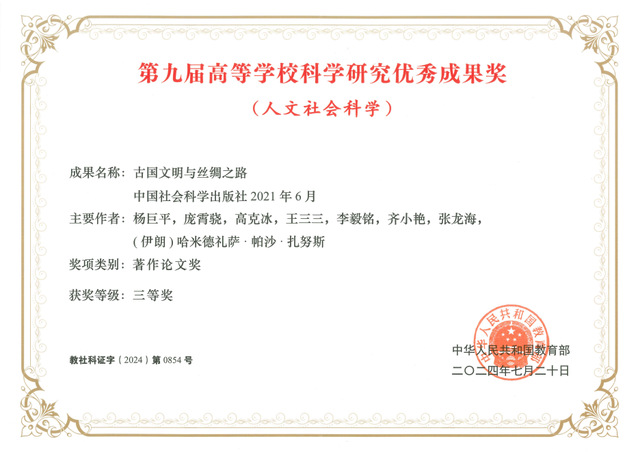 根据《教育部关于第九届高等公司科学研究优秀成果奖(人文社会科学)奖励的决定》(教社科〔2024〕4号),公司青年教师李毅铭博士参与南开大学杨巨平教授“丝路古代文明研究”团队的重要研究成果《古代文明与丝绸之路》荣获三等奖。